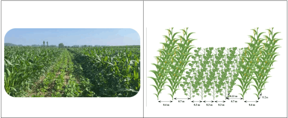 3、根據(jù)大豆玉米間作套種農藝特點,大豆采用先旋耕后種植,利于出苗、避免機具擁堵,玉米采用免耕種植,利于抗倒伏;